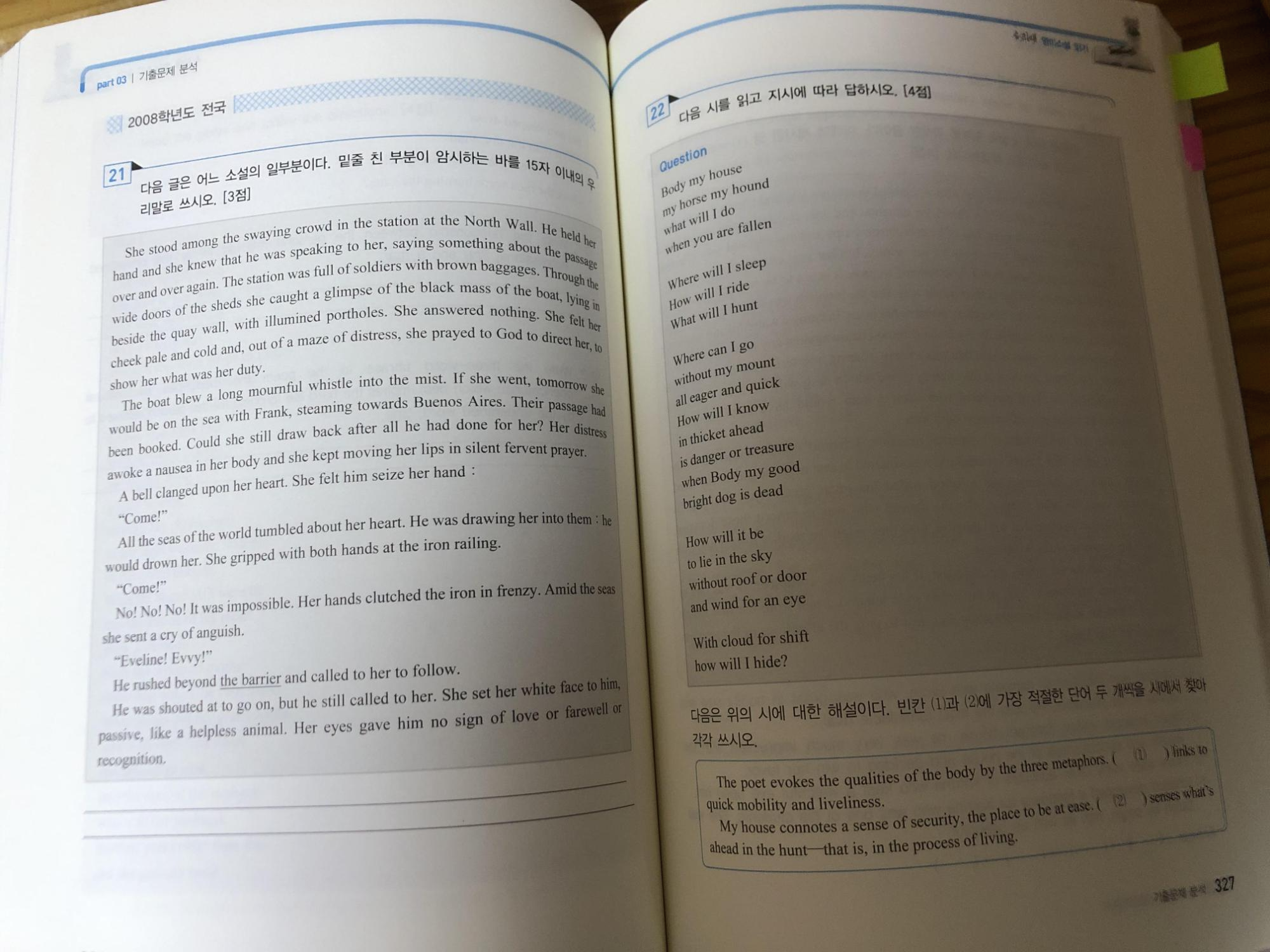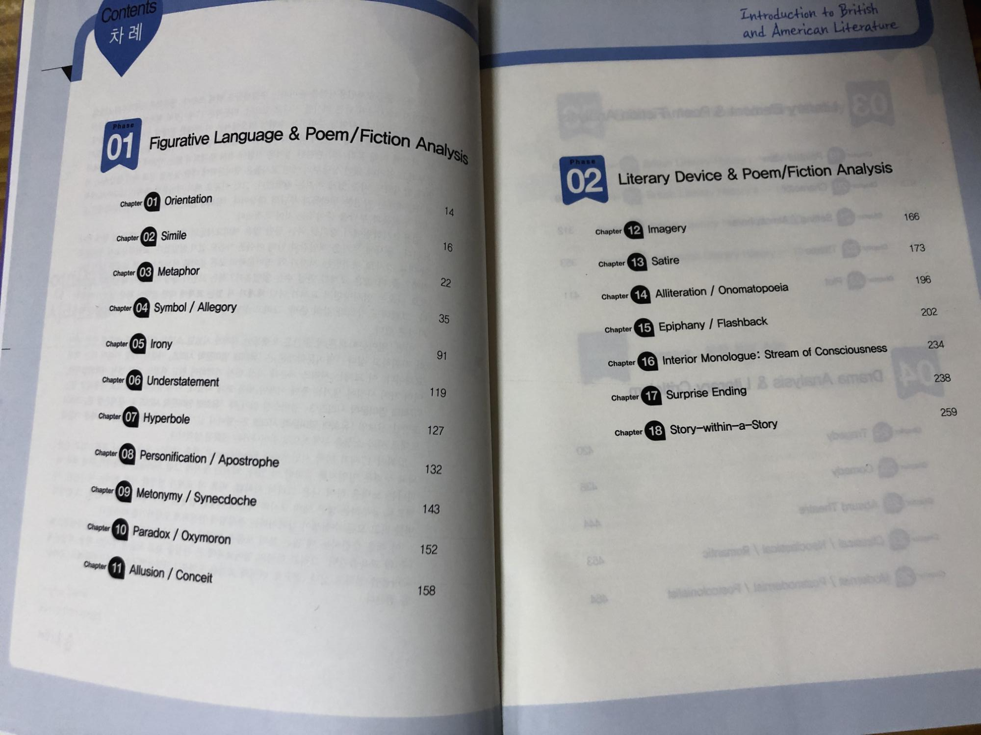 그리고 내용으로는 문학 용어를 바탕으로 관련 작품들이 수록되어 있습니다. 이 교재의 장점은 다양한 영미문학작품을 그 작품에서 사용된 기법과 함께 공부할 수 있다는 점이고, 단점은 문제가 없어서 임용 시험 유형에 적용해볼 수 없다는 점입니다. 따라서 이 책은 기초단계에서 사용하는 것을 추천드립니다