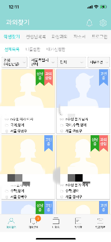 학부모나 학생에게 먼저 과외 문의가 들어올 수도 있고 위의 사진처럼 선생님이 먼저 학생한테 컨텍할 수도 있어요 자신이 원하는 조건을 세팅해서 과외를 원하는 학생들의 목록을 볼 수 있어요 그리고 자신이 원하는 학생이 있으면 먼저 과외 제의도 가능합니다 :) 그리고 학생도 원하면 상담이 진행됩니당