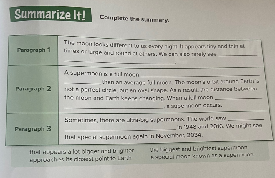 왜냐하면 학생들에게 글의 내용을 요약하라고 하면 글에 대한 이해는 했어도 output이 잘 안되는 경우가 있다. 그런데 이 책에는 가이드가 이미 있고 빈칸만 채우면 되기 때문에 학생들이 output을 하는 데에 큰 도움(scaffolding)이 될 것이다.