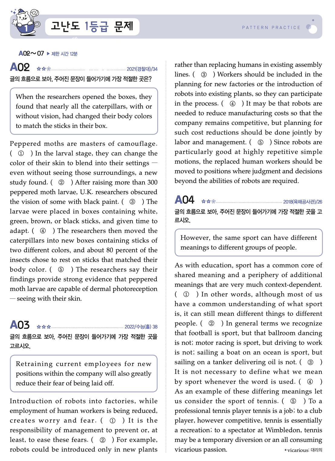 2) 1-2등급 수준이지만 어려운 유형[빈칸, 순서, 삽입 등]에서 실수 하는 학생